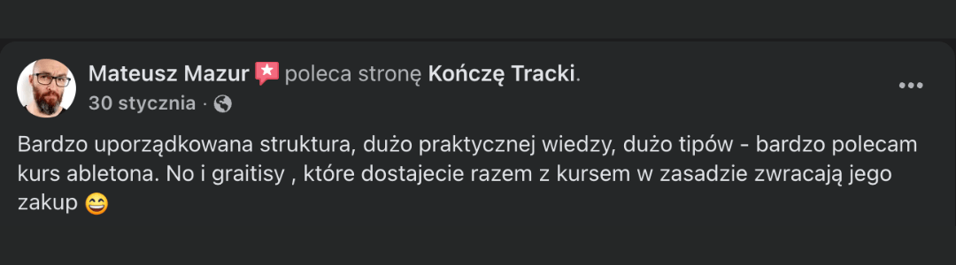 W swojej karierze przeszkoliłem setki osób z produkcji muzycznej w Ableton Live. Pracuję zarówno z początkującymi, jak i doświadczonymi twórcami muzyki elektronicznej. Więce opinii przeczytasz tutaj.